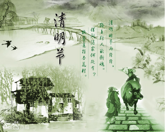 清明節(jié)又叫踏青節(jié),在仲春與暮春之交,也就是冬至后的第108天。是中國傳統(tǒng)節(jié)日,也是重要的祭祀節(jié)日之一,是祭祖和掃墓的日子[1]  。中國漢族傳統(tǒng)的清明節(jié)大約始于周代,距今已有二千五百多年的歷史。受漢族文化的影響,中國的滿族、赫哲族、壯族、鄂倫春族、侗族、土家族、苗族、瑤族、黎族、水族、京族、羌族等24個(gè)少數(shù)民族,也都有過清明節(jié)的習(xí)俗。掃墓祭祖、踏青郊游是基本主題。