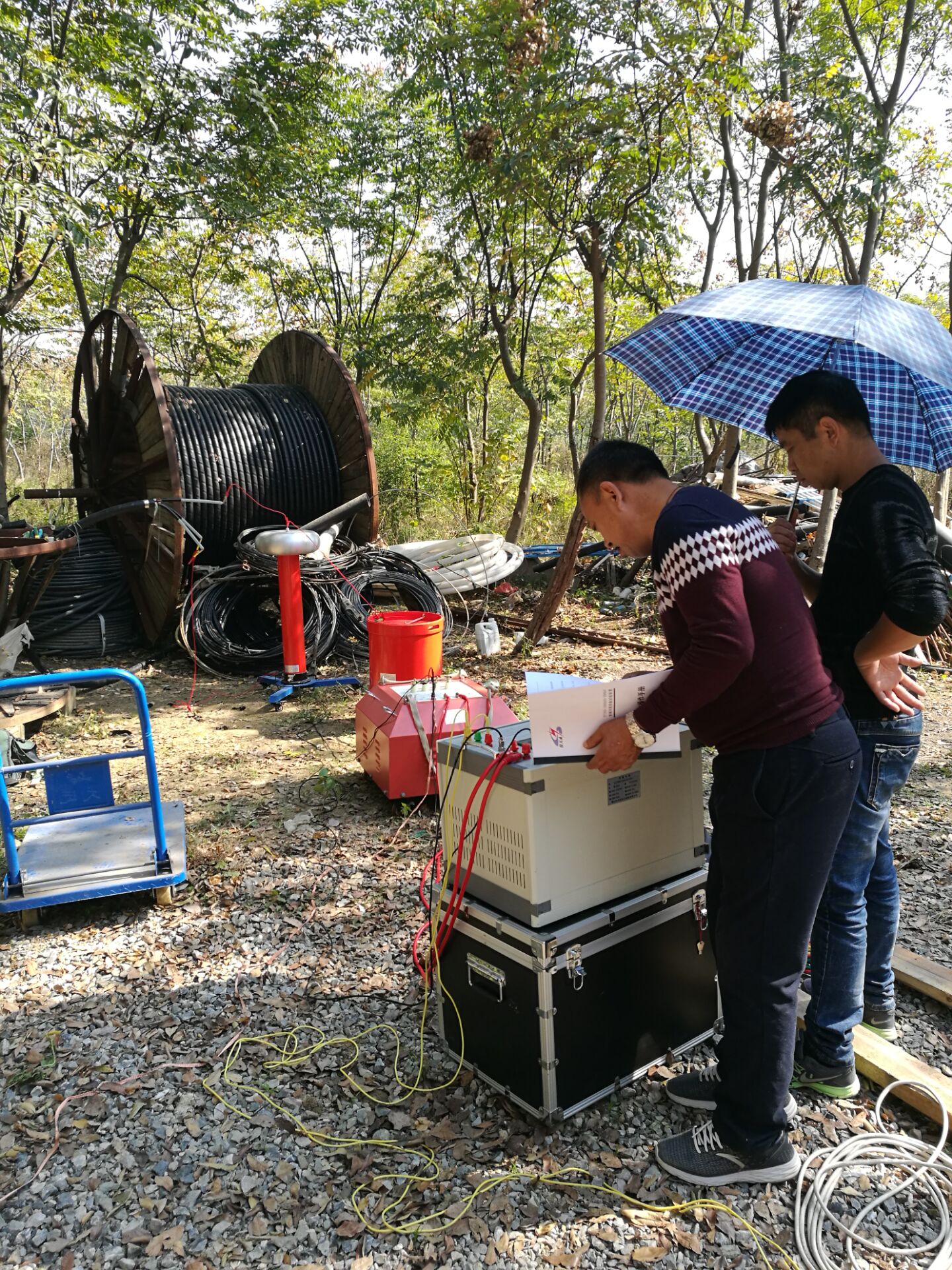 此次培訓的主要設備是我公司的優質產品:YTC850-1000kVA/200kV 變頻串聯諧振試驗裝置,李工首先對設備的原理和功能進行了全面而細致的講解。該裝置主要針對35kV、110kV電纜,110kV 及以下電壓等級GIS,開關,互感器等電氣設備,220kV及以下主變中性點的交流耐壓試驗,該裝置主要由變頻電源、勵磁變壓器、高壓電抗器、電容分壓器組成。具有過壓、過流、零位啟動、系統失諧(閃絡)等保護功能,具有全自動模式、手動模式、自動調諧手動升壓模式三種工作模式,方便用戶根據現場情況靈活選擇,提高試驗速度。
