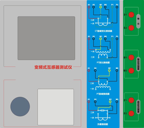 ·綠黑P1、P2端子:感應電壓測量端子      ·旋轉鼠標:輸入數值和操作命令