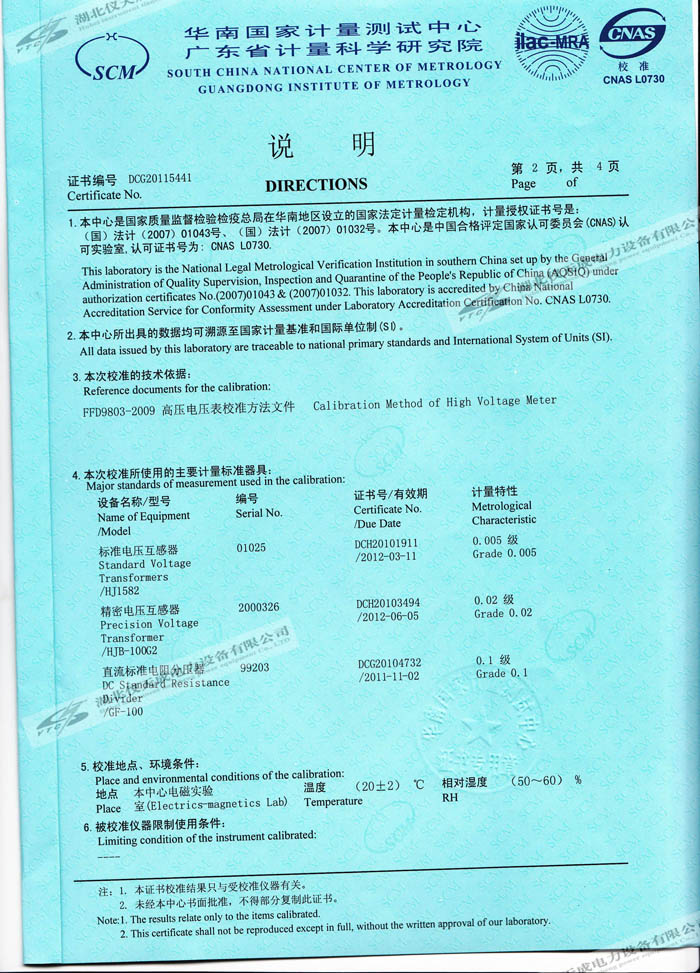 YTC8107-100電容分壓器高壓測(cè)量系統(tǒng)的資質(zhì)證書(shū)