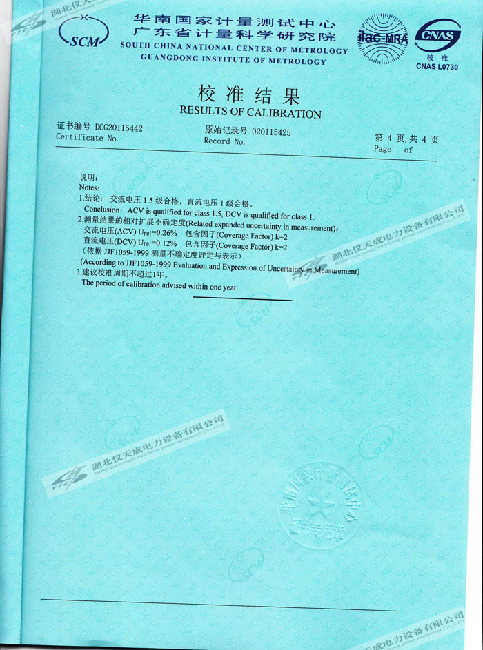 轉載:"YTC8106-200 交直流分壓器的資質證書" 請注明來源于儀天成電力。 更多技術問題請致電儀天成電力客戶服務:027-87876585,技術部專線:027-87876585,在線客服:719388481